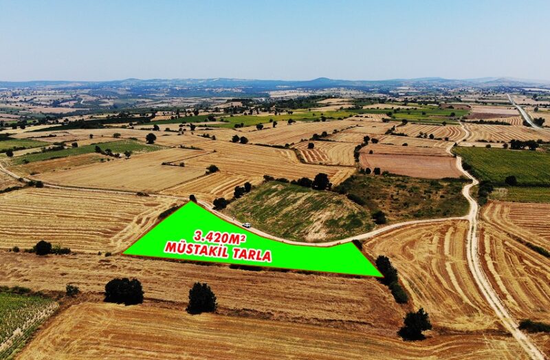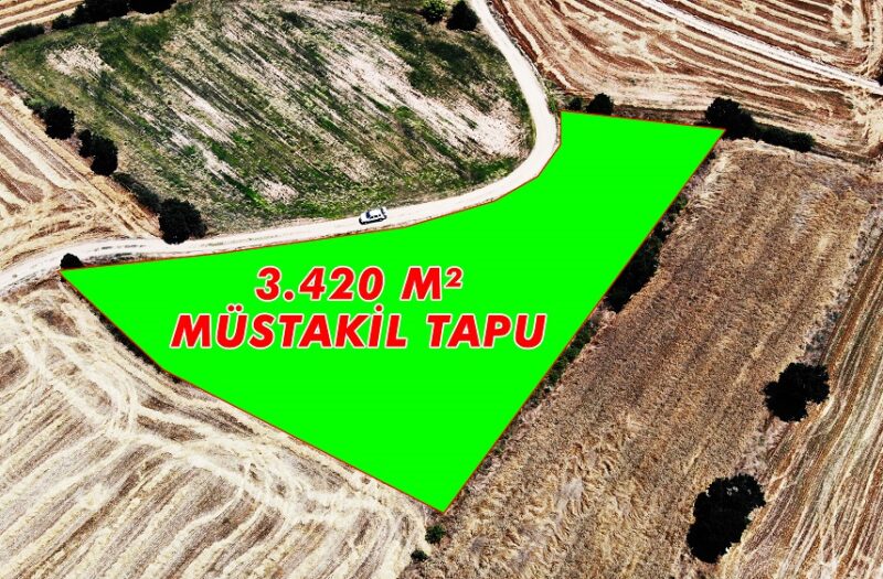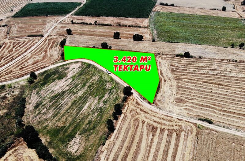 Edirne Lalapaşa Dombay Köyünde bulunan 3.420m² Resmi yola cephe Satılık Tarla.